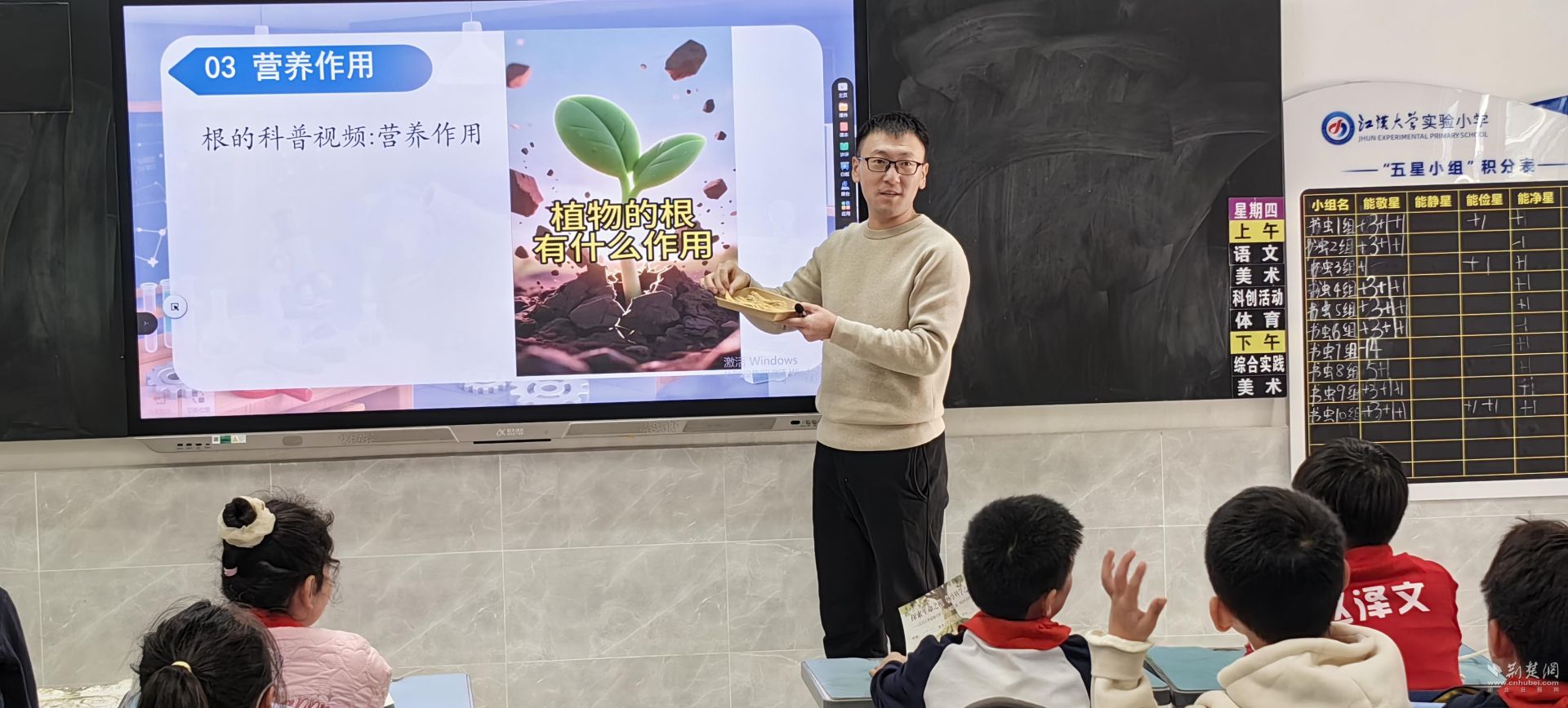 科学周启动前,学校已布置实践任务,引导学生走进自然、深入生活,收集形态各异的植物根系,并选取植物进行家庭养护观察。学生们化身“植物侦探”,在小区、公园、菜市场等地展开“寻根之旅”,识别出胡萝卜的主根、小麦的须根等不同形态。