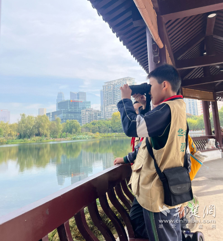 荆楚网(湖北日报网)讯(记者何鹏)10月31日,一场以“寻鸟沙湖·探水识螺——自然生态探秘”为主题的户外实践活动在沙湖顺利开展。江汉区华中里小学学子走出课堂,在湖光山色间认识鸟类、检测水质、了解福寿螺危害,沉浸式感受自然魅力,深化环保意识。