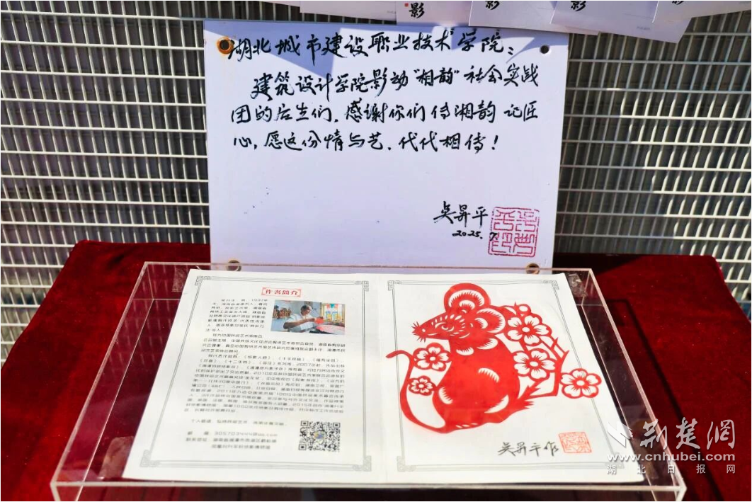 “影动‘湘’韵”实践团还在这里留下了他们的足迹:学习皮影技艺、整理口述史料、创作有现代教育意义的纸影短剧,甚至在校园里组建“余光皮影社”,让非遗传承有了青春接力。展区里那封传承人亲笔写的感谢信,字里行间都是对年轻一代的认可与期待。