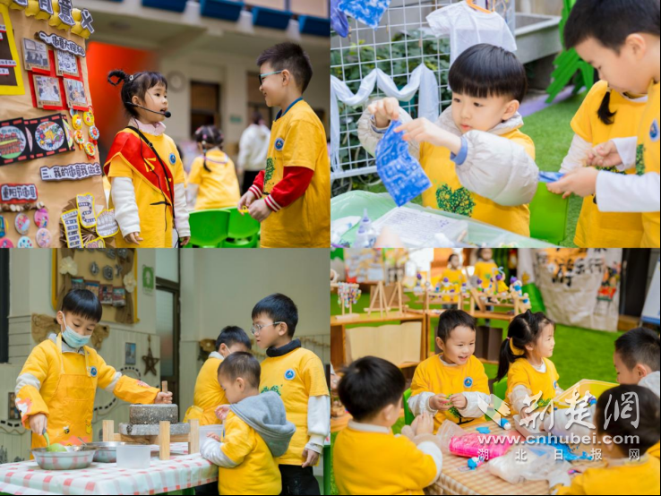步入江岸区珞珈山街幼儿园,映入眼帘的是以“乐吖小当家·老街游乐行”为主题的“乐研坊”体验现场。这里将红色基因与幼儿教育深度融合,设有五大坊区——童萌报趣坊、乐吖文创坊、古韵石磨坊、智趣妙章坊、布灵童创坊。通过游戏化和场景化的形式,让孩子们在实践过程中产生共鸣,并在自主体验中将抽象的精神品质具象化,实现红色基因的有效传承。