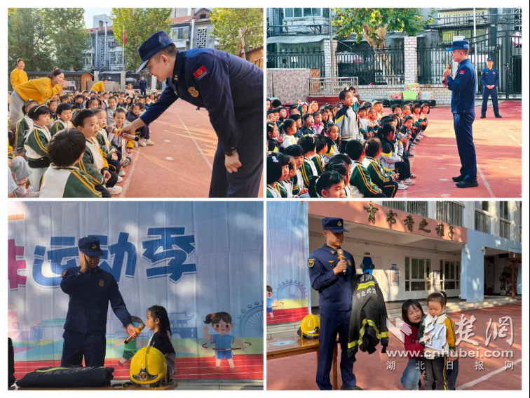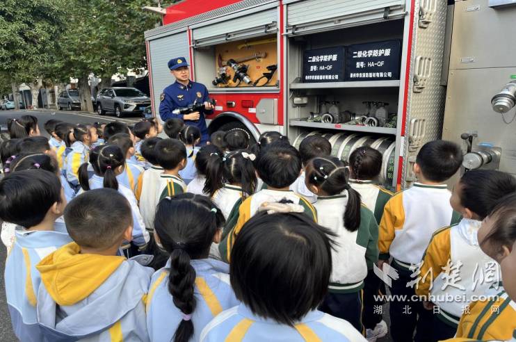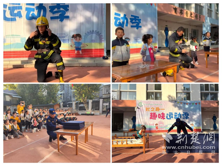 荆楚网(湖北日报网)讯(记者齐一璇 通讯员张煜)在全国消防日到来之际,为进一步普及消防安全知识,落实“社区资源进校园”育人理念,11月4日,武汉大学幼儿园四分园联合辖区单位水果湖消防救援站,面向中大班幼儿开展以“致敬‘最可爱的人’”为主题的消防安全宣教活动。活动以沉浸式、互动式体验为核心,将专业消防知识融入幼儿日常安全教育,为孩子们送上“安全大礼包”。