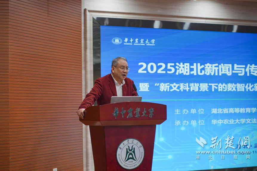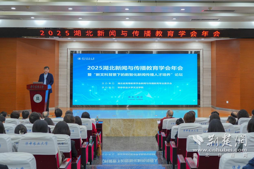 荆楚网(湖北日报网)讯(记者齐一璇 通讯员张艺、孙腾宇、段佳宁、朱东方 摄影陈璐祎、郭丁楠)时值第26个中国记者节,11月8日,由湖北省高等教育学会新闻与传播教育专业委员会(以下简称“湖北新闻与传播教育学会”)主办、华中农业大学文法学院承办的2025湖北新闻与传播教育学会年会暨“新文科背景下的数智化新闻传播人才培养”论坛在华中农业大学举行,来自武汉大学、华中科技大学、华中师范大学、湖北大学、华中农业大学等近40所湖北高校的160余位老师和学生参加了年会。湖北新闻与传播教育学会会长、武汉大学新闻与传播学院教授强月新,华中农业大学党委常委、副校长郭刚奇出席会议并致辞。开幕式由华中农业大学文法学院党委书记刘广乐主持。
