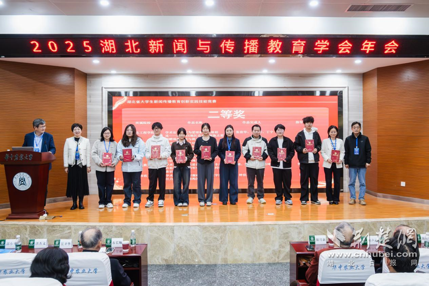 学会副会长、华中科技大学新闻与信息传播学院副院长郭小平教授,学会常务理事、华中农业大学文法学院广告与传播学系系主任乔同舟副教授分别代表主办方和承办方做总结致辞。会议还举行了2025湖北大学生新闻传播教育创新实践技能竞赛颁奖典礼和2025年湖北新闻与传播教育年会论坛获奖论文颁奖仪式。