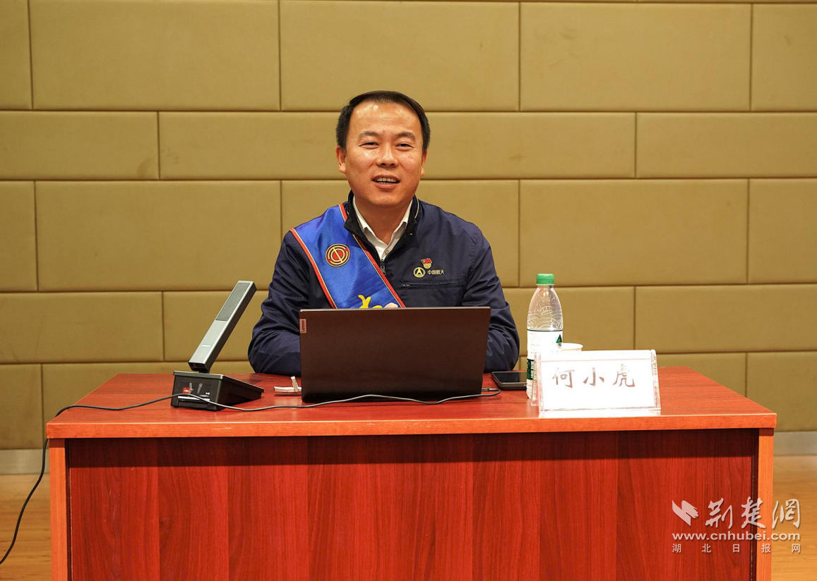 活动最后,全国劳动模范、2022大国工匠年度人物、全国五一劳动奖章获得者、航天科技六院西安航天发动机有限公司特级技师何小虎,以“红领技术先锋,光电匠心育人”为主题作专题讲座,为在场师生带来一场深刻的思想启迪与精神洗礼。