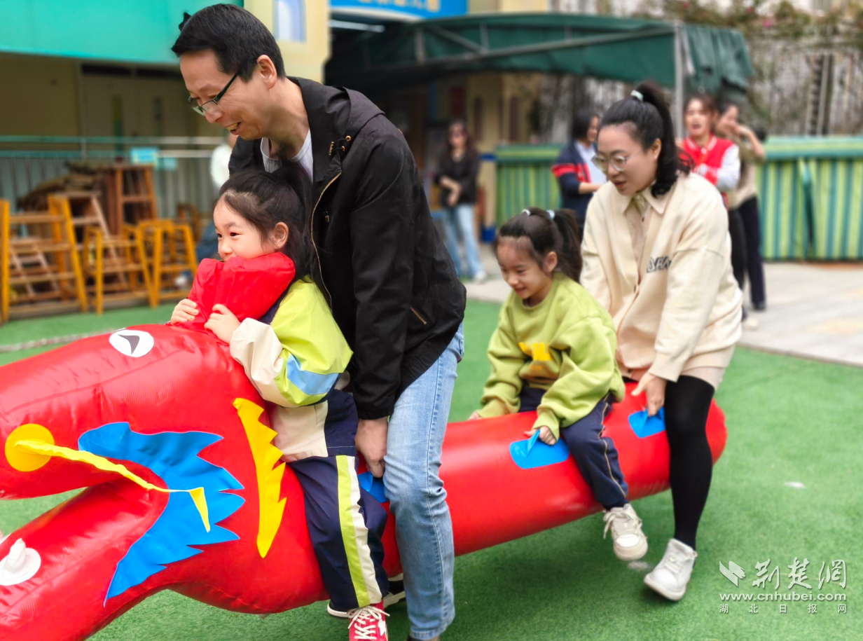 亲子互动环节更是温情又热闹。“趣玩蹴鞠”“赛龙舟”等游戏,成为家长与孩子拉近距离的纽带,家长与孩子默契配合,协力闯关。家校拔河比赛点燃全场,呐喊加油声此起彼伏,尽显家园同心的凝聚力。