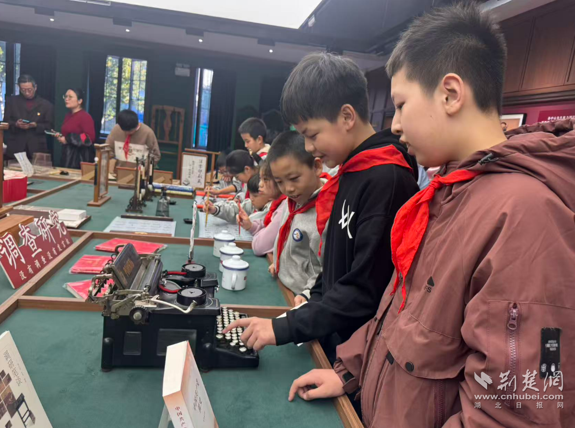 荆楚网(湖北日报网)讯(记者何鹏 通讯员邓甜恬)11月13日下午,江汉区福建街小学联合清芬社区以“党带队”形式,组织优秀少先队员走进六渡桥长江书店,开展“追寻红色足迹 争做时代新人”主题活动,在实地探访、沉浸互动中触摸革命历史,让红色基因在青少年心中扎根。