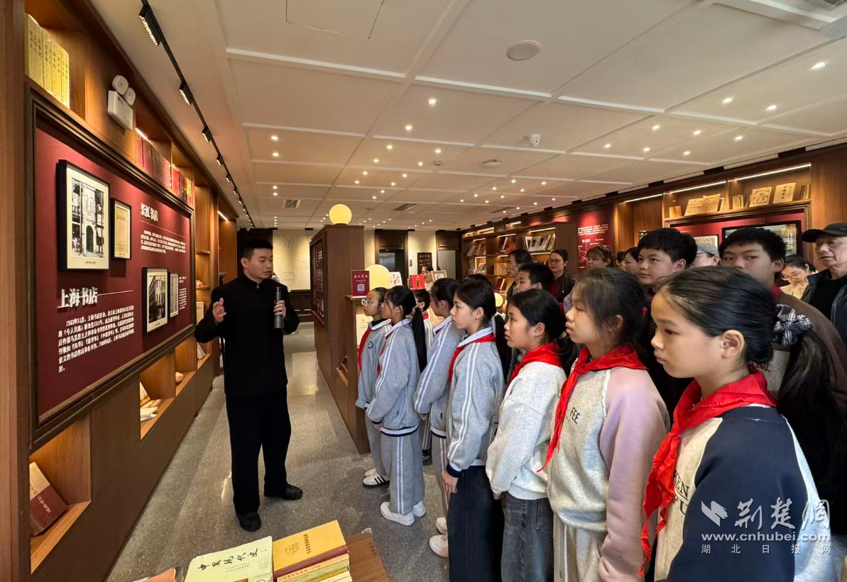 活动现场,党员教师与社区工作者带领少先队员们首先走进书店复原展区,跟随书店讲解员的详实讲解,从史料展板、老照片与实物展品中,了解长江书店作为20世纪20年代中共武汉出版发行机构的红色过往——这里曾是《向导》《新青年》等进步刊物的传播阵地,也是凝聚革命力量的“红色驿站”,一段段峥嵘岁月让孩子们驻足凝神。