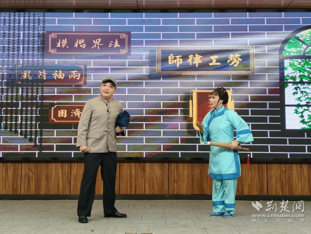 荆楚网(湖北日报网)讯(记者林杉 通讯员常城 郭可慧 饶容彪 郭子畅)11月10日,武汉工程大学图灵报告厅内掌声响起,百余名师生、剧院及企业代表共同观看了一堂特殊的《中国近现代史纲要》课。这堂课以融合剧场《人间义》的形式,呈现了武汉工程大学马克思主义学院与湖北省戏曲艺术剧院联合推动的“戏剧+思政”教学改革新进展。