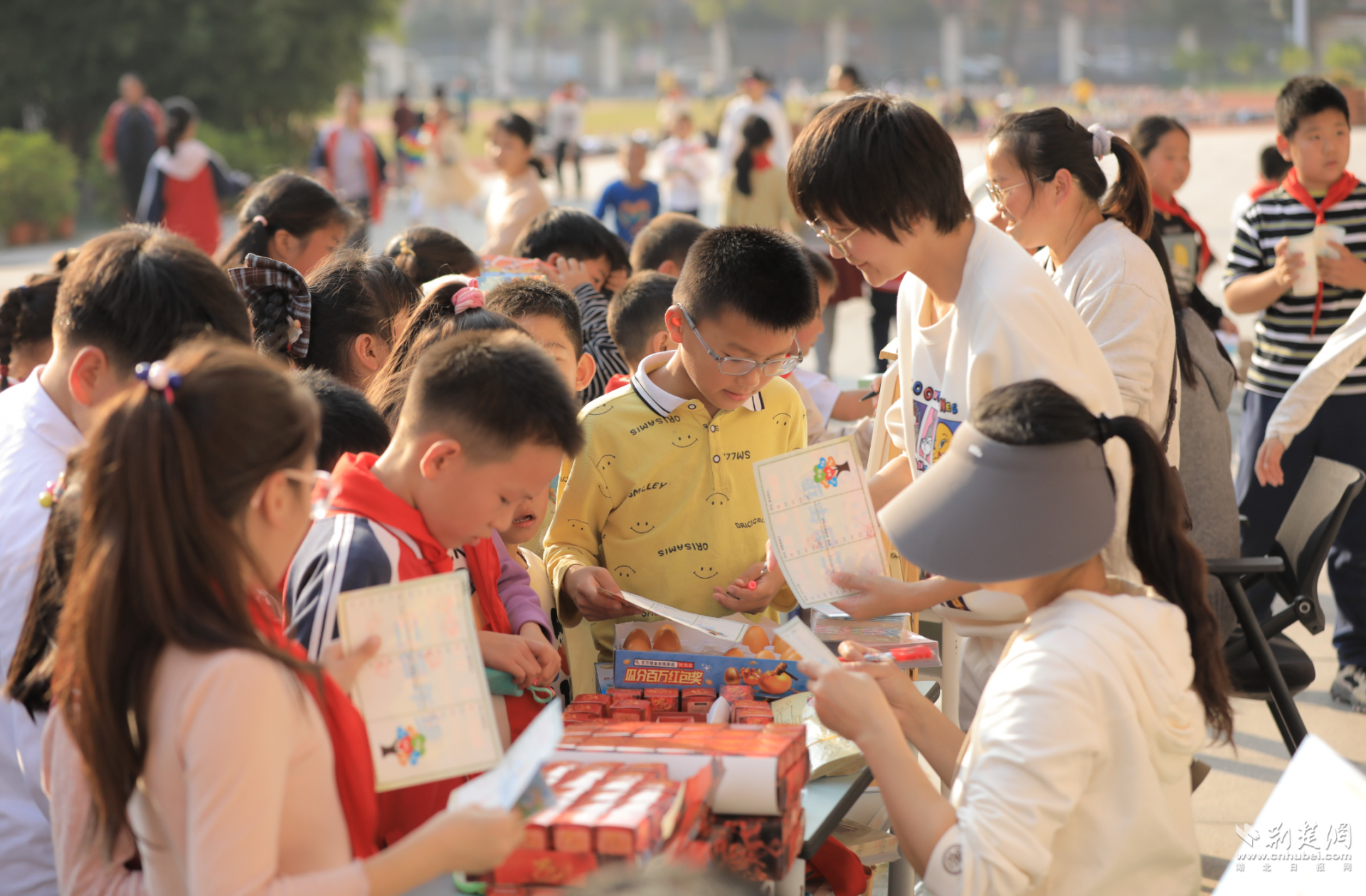 活动尾声,学生们手持积分卡,在兑奖区挑选文具、玩具等奖品,与同伴分享收获的喜悦。一张张笑脸,写满了努力后的成就感。