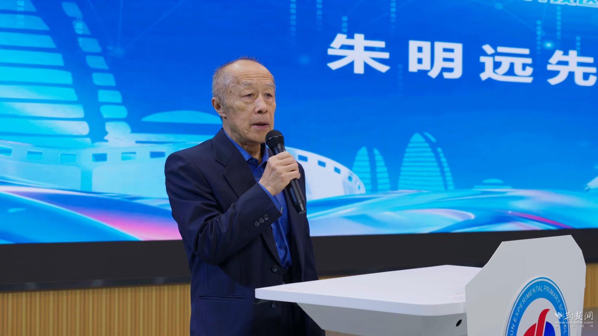 韩方亮在致辞中表示,科技节集中展示了青少年科技成果与区域科学教育成效,他勉励青少年以科学家为榜样,勇攀科技高峰。朱明远随后登台,讲述了父亲朱光亚投身“两弹一星”事业的经历,并寄语孩子们“快快长大,当光亚爷爷的接班人”。