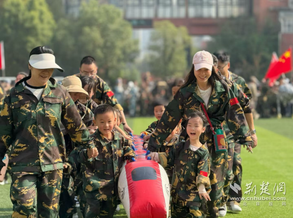 荆楚网(湖北日报网)讯(记者齐一璇 通讯员陈晓丹)红旗猎猎,映照炽热童心;军歌铿锵,礼赞壮丽山河。近日,武汉市江岸区滨江幼儿园一场以“国防”为名、以“爱国”为魂的亲子运动会,在武汉市汉铁高级中学运动场上演。来自四个园区的2000余名师生与家长热血集结。一群稚气未脱的“小小战士”与爸爸妈妈携手并肩,在竞技中挥洒汗水、凝聚力量,演绎新时代的“中国力量”。