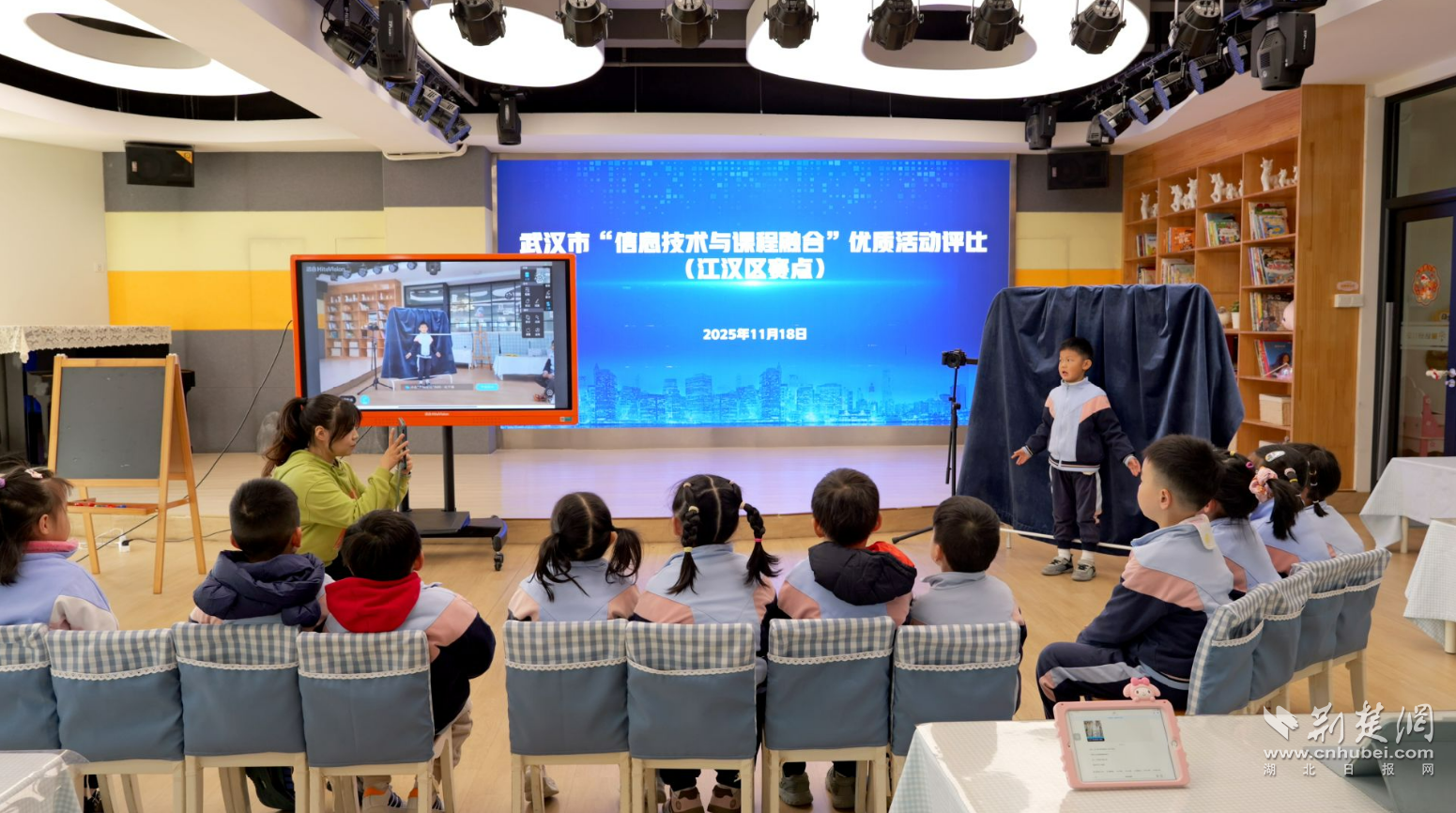荆楚网(湖北日报网)讯(记者何鹏)数字赋能启童心,融合教学展新篇。11月18日,2025年“武汉好课堂”幼儿园信息技术与课程融合优质课评比活动江汉区赛点在江汉区童话幼儿园举行。活动以“技术融于课程,成长源于体验”为核心主题,集中展现了信息技术与学前教育五大领域深度融合的最新实践成果。