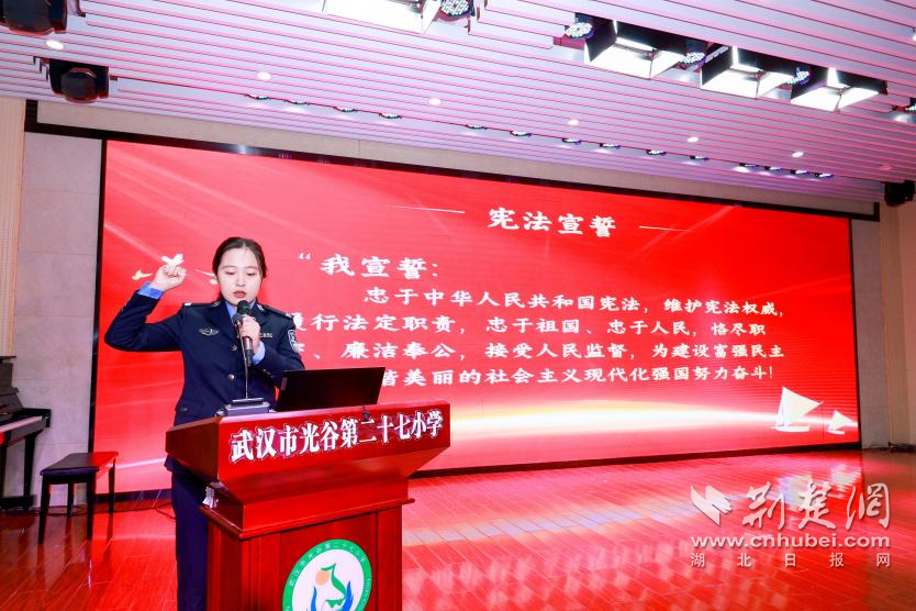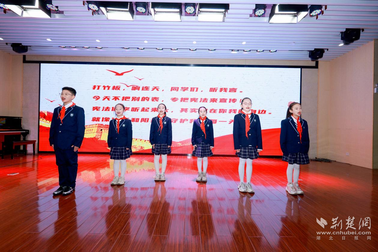 由光谷二十七小学生自编自演的法治快板节目《宪法精神放光芒》将枯燥的法律条文变成了朗朗上口的乐章,让宪法知识“声”入人心。法治知识有奖竞答环节更是将气氛推向高潮,同学们争先恐后地举手,在欢声笑语中巩固了知识,成为了法治的“小粉丝”。