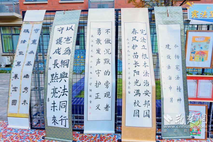 荆楚网(湖北日报网)讯(记者唐天琪 通讯员陈娟、胡嫚、石沁)朗朗的晨读声回荡校园,五彩的画笔描绘法治蓝图,精彩的快板唱响宪法精神……为迎接第十二个国家宪法日的到来,推动宪法深入人心,武汉市光谷第二十七小学化身为法治知识的奇妙乐园,一场以“宪法守护成长,法治点亮未来”为主题的法治宣传月系列活动如火如荼地展开,为师生们带来一席丰盛的法治教育盛宴。
