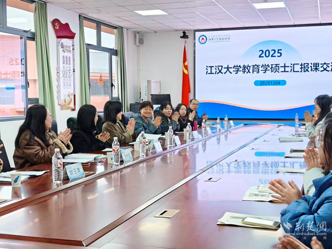 荆楚网(湖北日报网)讯(记者林杉 通讯员涂熔)12月4日,江汉大学实验中学为在该校实习的5位江汉大学人文学院2025级教育学硕士生举办教学成果展示课。本次活动由学校课程教学中心与语文教研组共同组织,江汉大学、江汉大学实验中学及江汉大学实验小学三方代表参与,通过课堂展示、分层评课与荣誉表彰等环节,推动师范教育与一线教学深度融合。