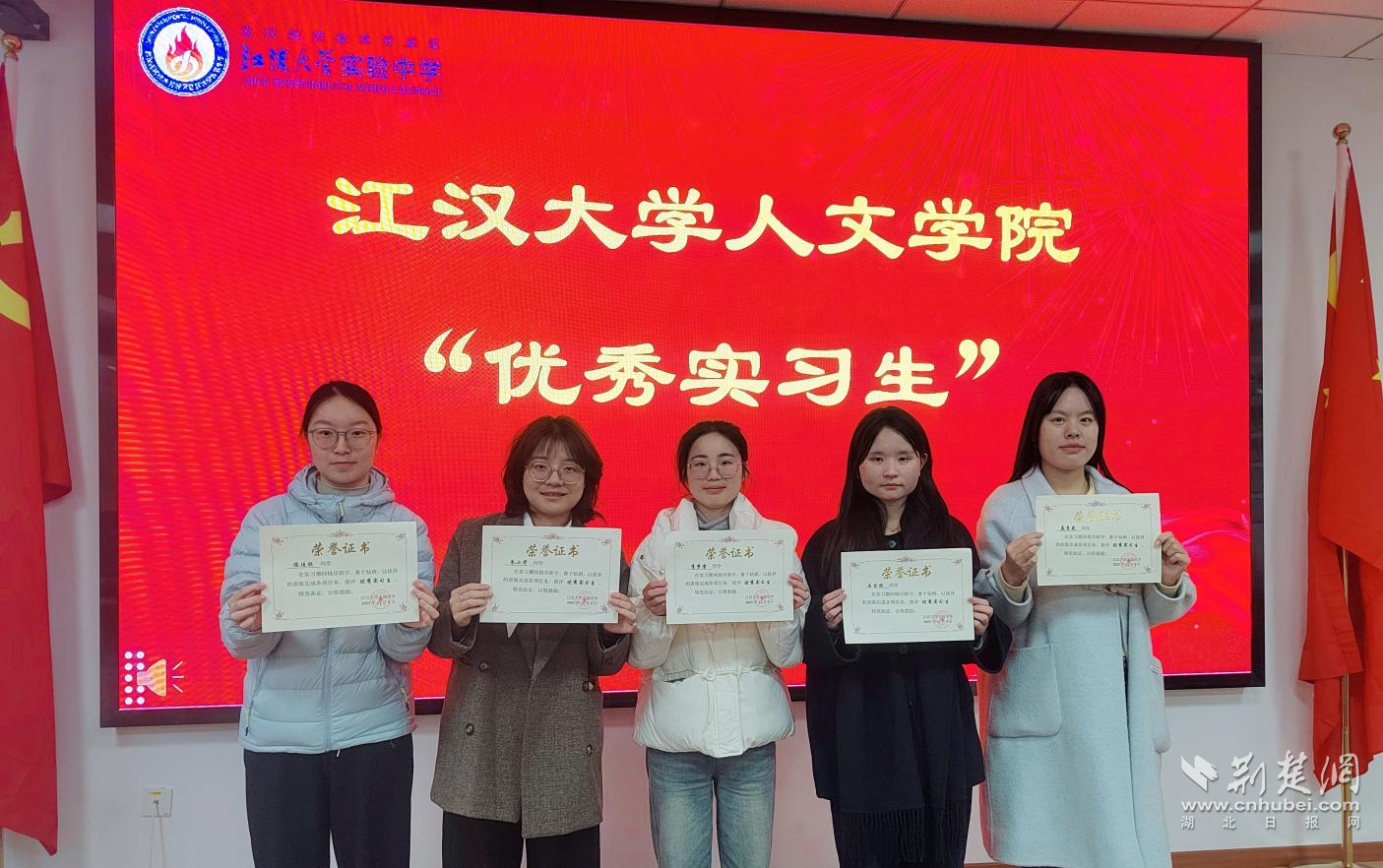 活动最后,江汉大学实验中学为5位实习生颁发“优秀实习生”证书,肯定她们在实习期间的投入与进步。实习生们纷纷表示,此次实践收获丰富,将在今后教学中继续磨砺成长。