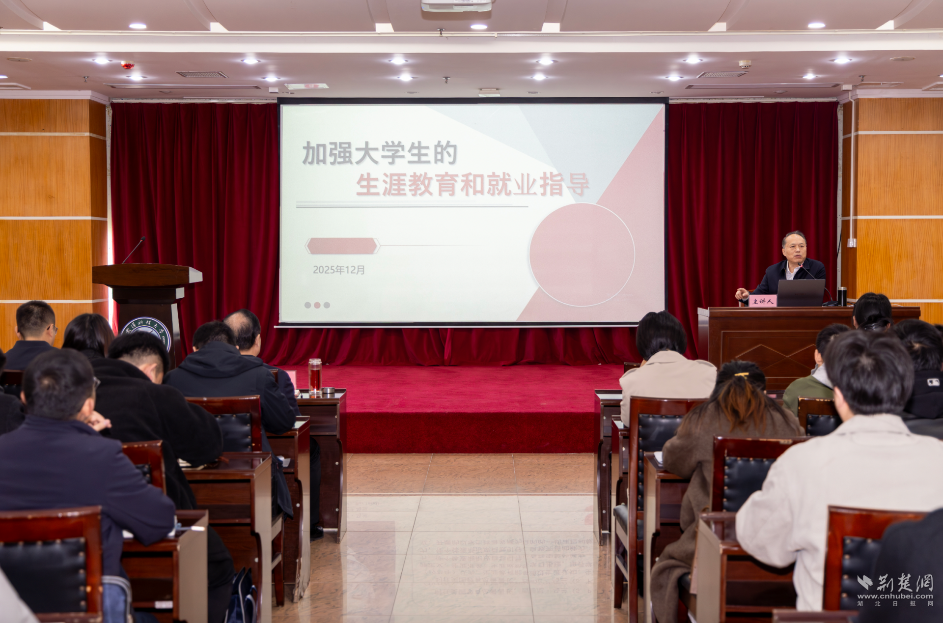 荆楚网(湖北日报网)讯(记者林杉 通讯员程毓 摄影陈孖川)12月4日,湖北省教育厅原一级巡视员、湖北省生涯教育研究会会长张金元,受邀在武汉科技大学作加强大学生生涯教育和就业指导专题报告,为该校20个学院的党委副书记及全体辅导员带来一场聚焦实务的指导。