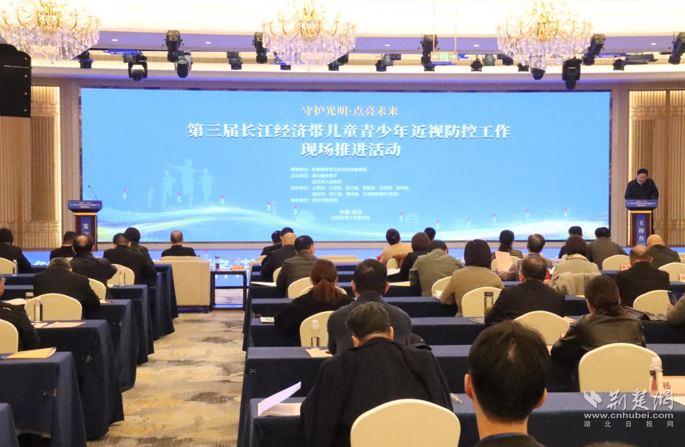 荆楚网(湖北日报网)讯(记者何鹏 通讯员邹永宁、曹敏、袁泉)守护光明,点亮未来。12月6日上午,第三届长江经济带儿童青少年近视防控工作现场推进活动在汉举行。来自长江经济带11省(市)近视防控专家、学者齐聚江城,共同点亮儿童青少年视力健康的未来之光。