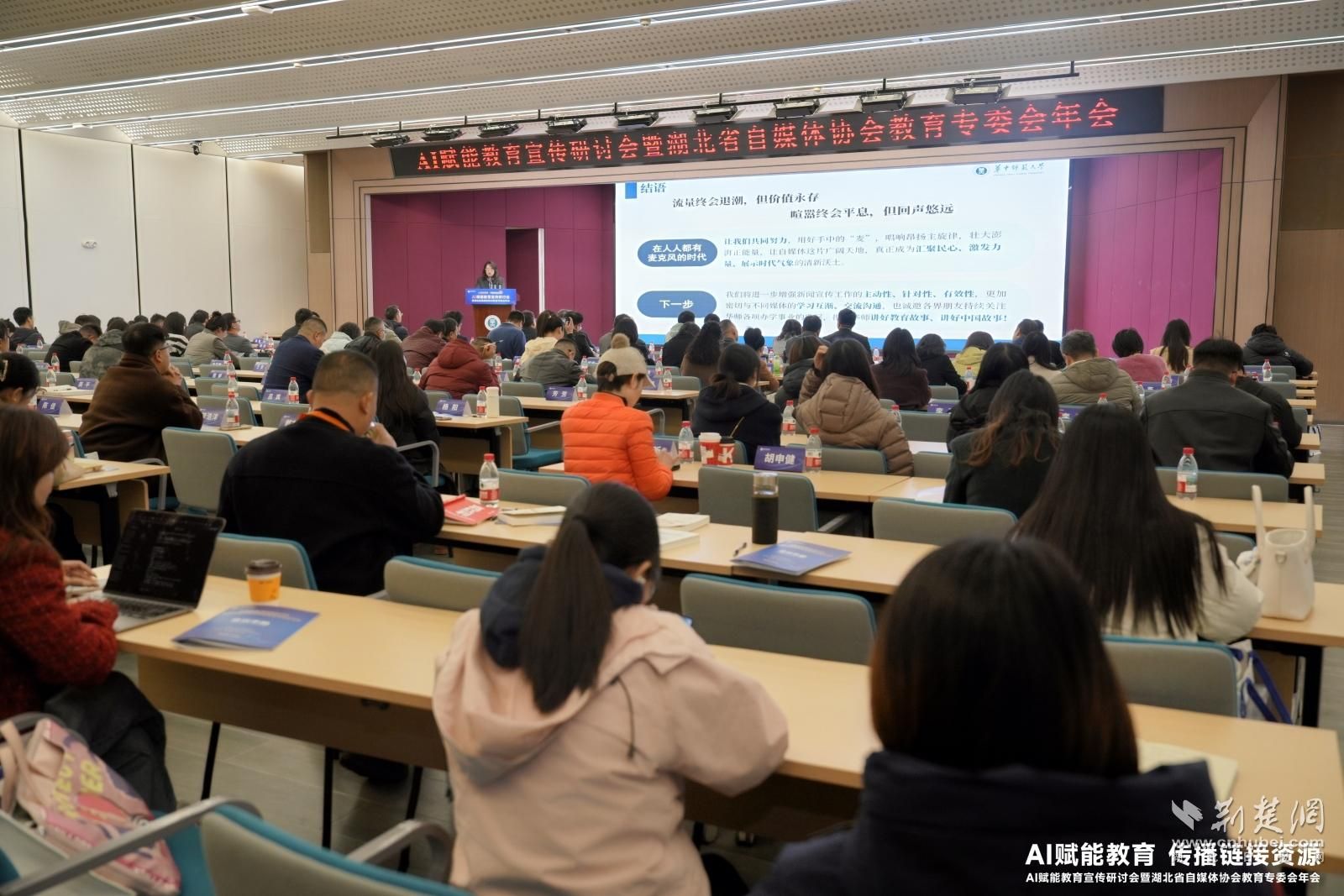 荆楚网(湖北日报网)讯(记者齐一璇 通讯员夏双双)12月6日,“AI赋能教育宣传研讨会暨湖北省自媒体协会教育专委会年会”在华中师范大学新文科楼一楼报告厅举办。会议以“AI赋能教育·传播链接资源”为主题,汇聚了高校、中小学、幼儿园和教育界的自媒体行业代表150余人,共同探讨人工智能技术如何重塑教育宣传生态,推动资源高效整合。省委网信办、省自媒体协会相关领导出席。