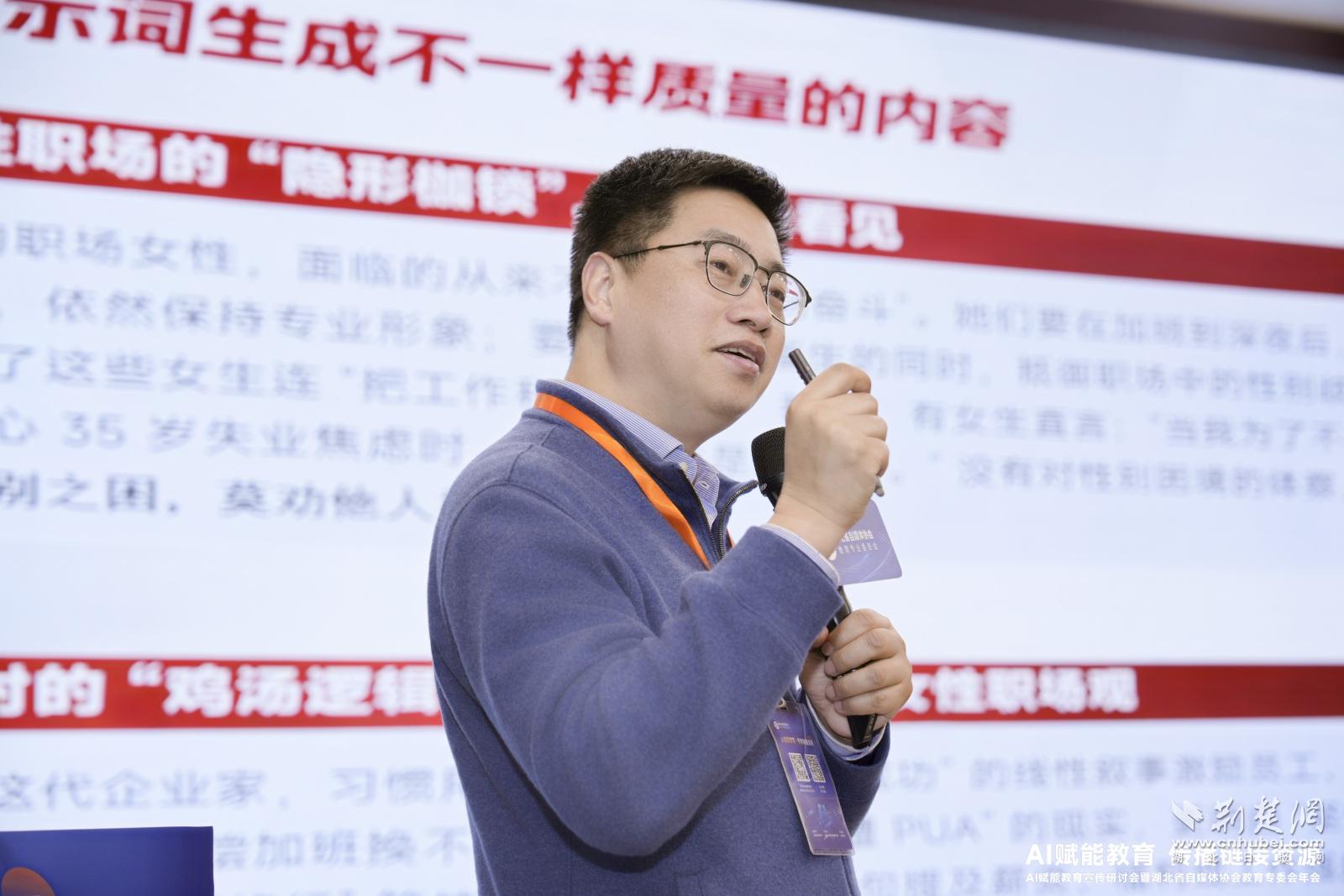 在主题分享中,知乎城市湖北总编辑任丝璐展示了AI直答工具、第二课堂和AIClub三大模块,分享如何构建未来教育新生态。抖音本地生活服务商总经理杨静提出“原生形态×AI生产力”融合方案,通过碎片化知识设计、场景化情感共鸣与互动式传播,助力教育内容破圈。微博湖北资深策划何文分享了微博平台通过构建高密度的圈层兴趣场,与校园群体建立了深度情感链接,为教育宣传提供了精准触达、激发共鸣、传递正能量的稀缺渠道和强大动能。