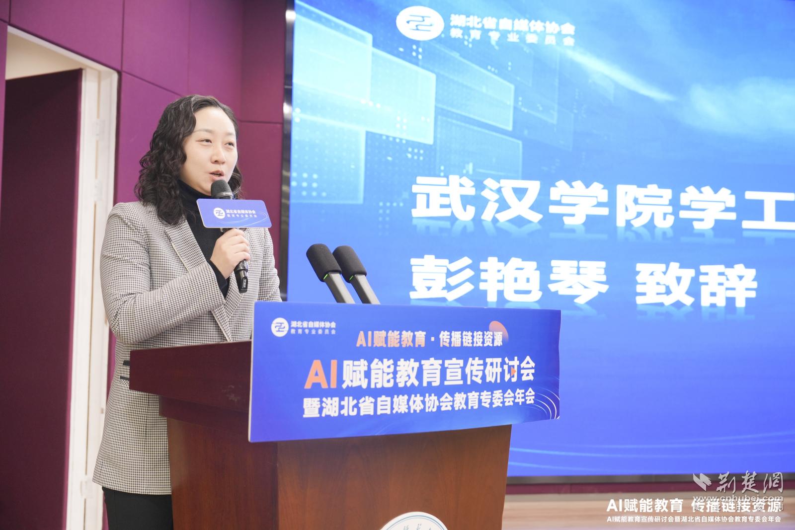 会议在湖北省自媒体协会的指导下,由教育专业委员会主办、武汉学院承办。开幕式上,武汉学院学生工作处副处长彭艳琴致辞,湖北省自媒体协会会长吴志远、省委网信办网络社会工作处负责人分别讲话,提出AI技术为教育内容创作及品牌传播带来的革命性机遇。吴志远表示:“自媒体与教育的深度融合,需以技术为引擎,以内容为核心,构建可持续的智慧教育传播体系。”