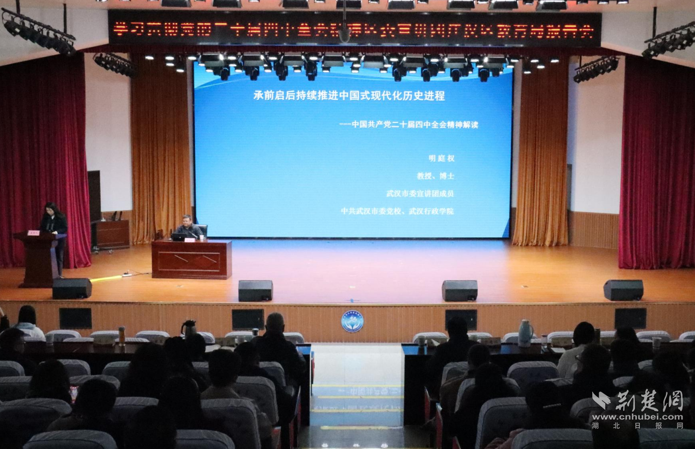 会议邀请中共武汉市委党校哲学教研部教授、明庭权博士,以《承前启后持续推进中国式现代化历史进程》为主题,作中国共产党二十届四中全会精神解读。