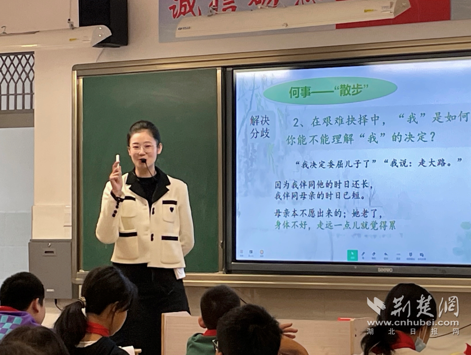 荆楚网(湖北日报网)讯(记者齐一璇)“大家好,我是来自武珞路实验初级中学的语文教师程诗迪。很高兴和大家相聚,共度一段难忘的语文时光。”12月14日,在湖北省初中学科建设高质量发展巡礼活动中,武汉市武珞路实验初级中学九年级语文教师程诗迪推介的课例“月色重现,闲心再寻:沉浸式踏月夜游承天寺”,以其创新的教学设计和沉浸式的课堂体验,吸引了广泛关注。