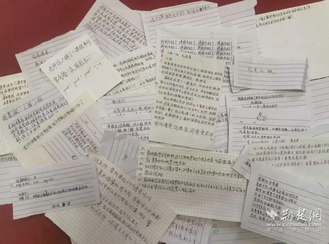 荆楚网(湖北日报网)讯(记者唐天琪 通讯员汤谨荧、王奕)“每次上您的课都觉得时间过得特别快,真希望还能接着听下去……”学期末的最后一节《工程项目管理》课,本应是课程总结与展望的时刻,却因62封饱含深情的手写信,被赋予了别样的温情与感动。这些信件如同一束束温暖的光,照亮了课堂,也照亮了师生间心灵相通的道路。