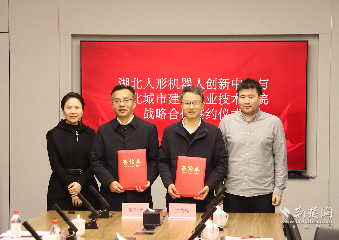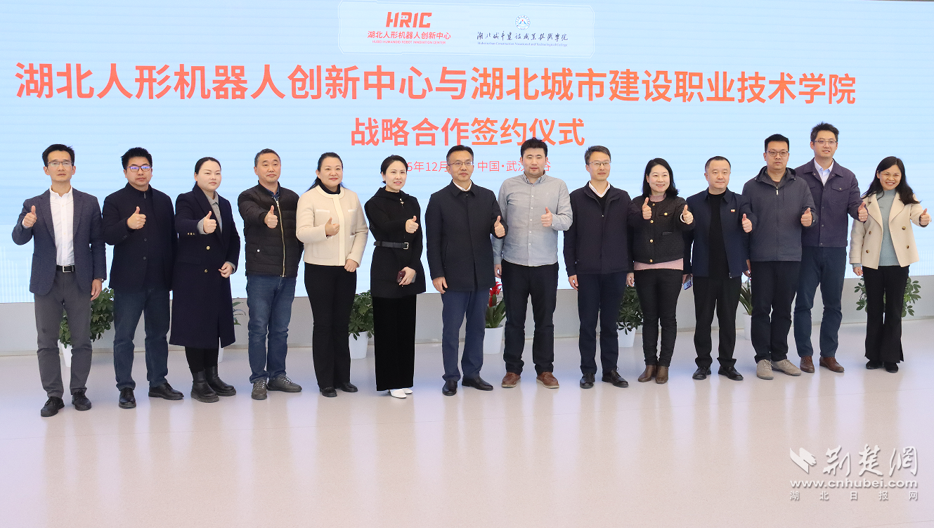 荆楚网(湖北日报网)讯(记者何鹏 通讯员范朋颖)12月19日,湖北人形机器人创新中心有限公司与湖北城市建设职业技术学院战略合作签约仪式在东湖新技术开发区数字经济产业园湖北人形机器人创新中心举行。双方围绕人工智能、机器人技术与智能建造展开深度合作,共同推进人才培养、师资建设、技术研发与产业服务,助力湖北省在“人工智能+建筑”产教融合领域迈出实质性步伐。