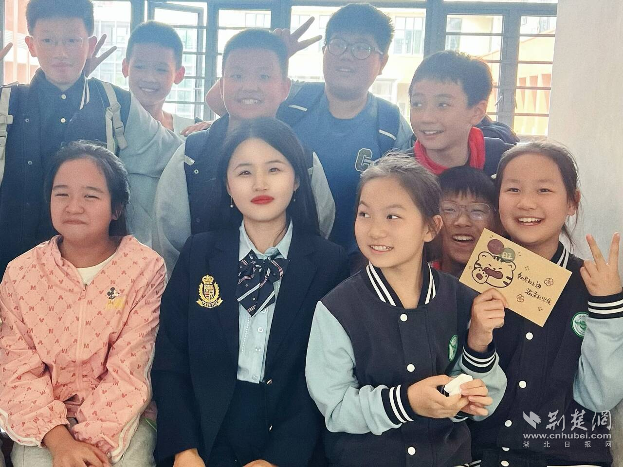 每周,她都会和学生们拍合照,起初源于“与老师合照”奖励券的流行,后来演变成固定的温暖仪式。照片里,有运动会候场时的鼓劲打气,有秋日阳光下捡拾银杏叶的欢笑,也有孩子们收到手写信后,簇拥着她合影的周五放学时光。
