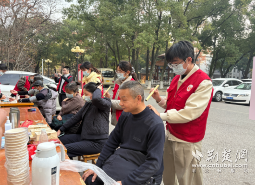 荆楚网(湖北日报网)讯(记者何鹏 通讯员胡梦佳、汪文苑)12月18日,湖北中医药大学中医学院与湖北警官学院离退休干部处联合开展“志愿暖警营,中医护银龄”中医药文化进高校活动。活动精准对接中医药专业优势与老年健康需求。中医学院研究生第五党支部、第六党支部、本科生第三党支部党员骨干牵头,“时珍国医暖阳志愿服务队”“素问语社”工作室师生共同参与。