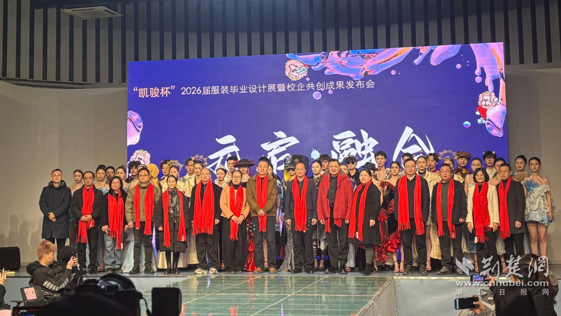 荆楚网(湖北日报网)讯(记者何鹏 通讯员陈峰、朱丽芬)12月25日上午,武汉职业技术大学2026届服装专业毕业设计汇演暨校企共创成果发布会顺利举行。在该校时尚与传媒学院师生带来了一场数字科技与服饰艺术交融、传统文化与未来美学共鸣的视听盛宴。