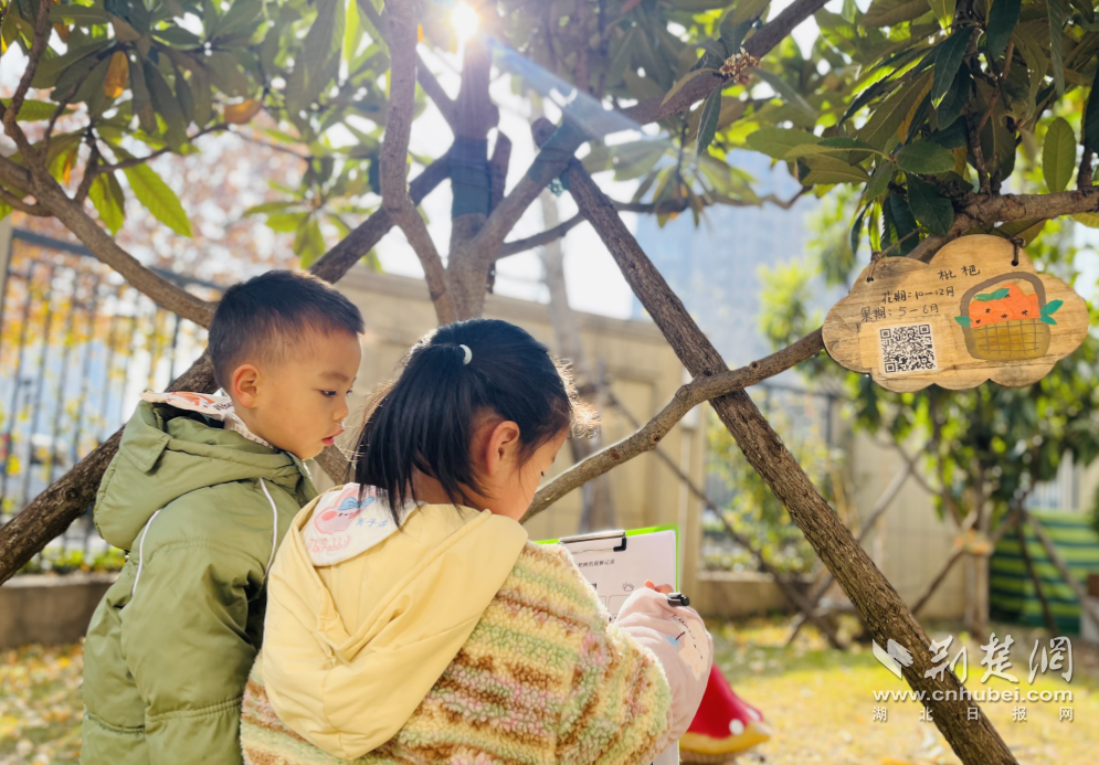 荆楚网(湖北日报网)讯(记者何鹏、许文秀 通讯员吴梦萦)在十二月清冷的冬日里,洪山区第一幼儿园悦葵园的枇杷树却悄然绽开了一簇簇米白色的小花,这抹意外的生机瞬间抓住了中班葵宝们好奇的目光。