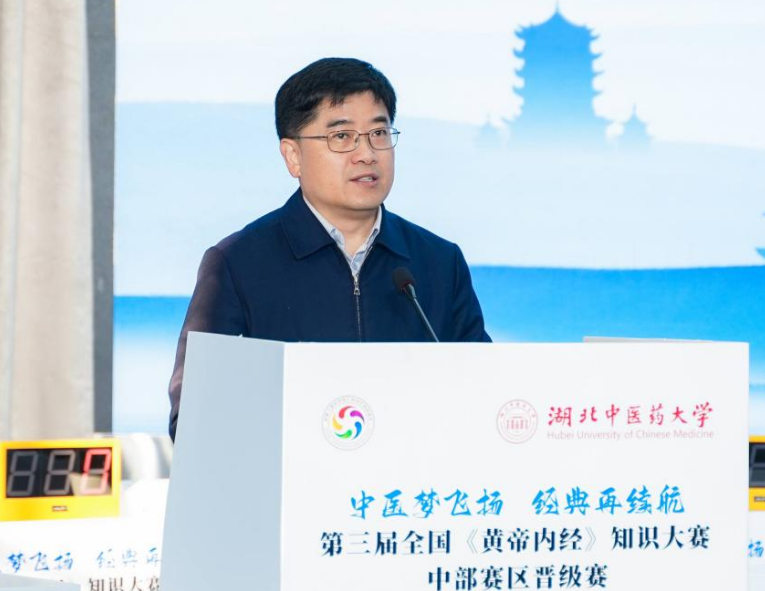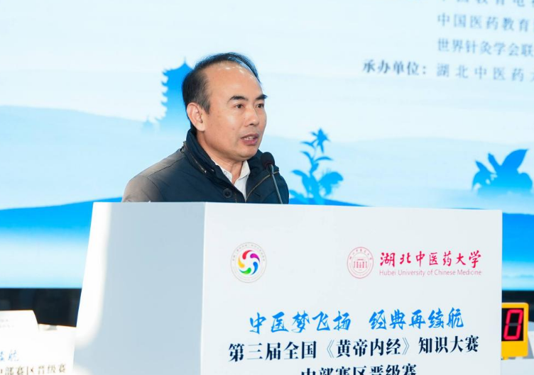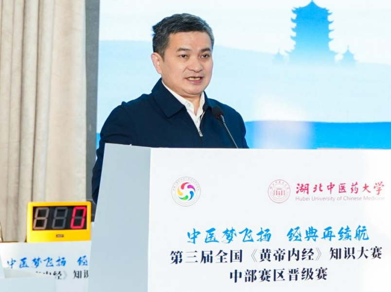 李涛强调了中医药在我国医疗卫生体系中的独特优势与《黄帝内经》的重要地位。他指出,湖北中医药底蕴深厚,大赛为中部五省中医药人才提供了交流检阅平台,希望参赛者深耕经典筑牢专业根基,活用经典推动守正创新,传播经典助力健康中国建设,为中医药事业发展贡献力量。