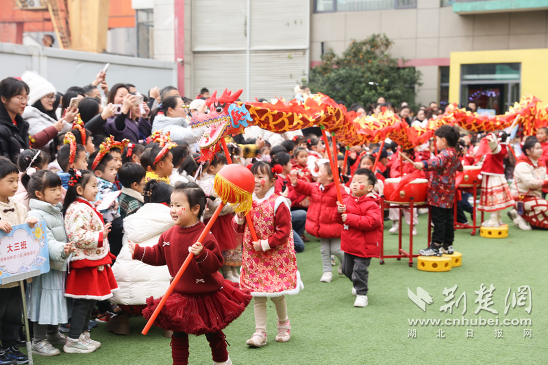 萌娃舞龙闹新春,珞珈海赋幼儿园里年味浓、童趣足。通讯员供图