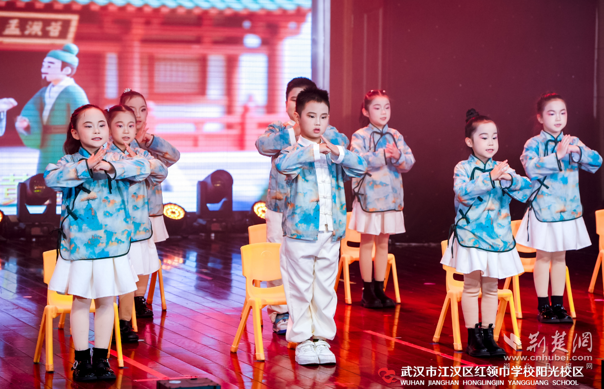 在12月31日的主题展演现场,孩子们的印象江城更是凝聚为艺术的回响。演出以三大篇章,清晰勾勒出情感升华的路径:在“寻迹·印象江城”中,从古典舞《橘颂·长歌行》的楚风古韵,到民乐合奏《江潮听楼·茉莉生香》中流淌的山水清音,再到汉剧《一戏传承·白蛇情》的本土化转译,孩子们于传承中触摸文化根脉;在“寻味·烟火江城”中,表演唱《我你风·烟火三行》、舞蹈《爸妈,等等我的远方》与城市民谣《汉阳门花园》,将市井生活、亲情守望与深层乡愁化作真挚的艺术语言;而在“寻梦·星耀江城”中,民族诵读《同心圆·星光共潮生》与全场共演《浪浪山·星耀启程》,则象征着个体感悟汇聚为集体力量,共同奔赴未来。