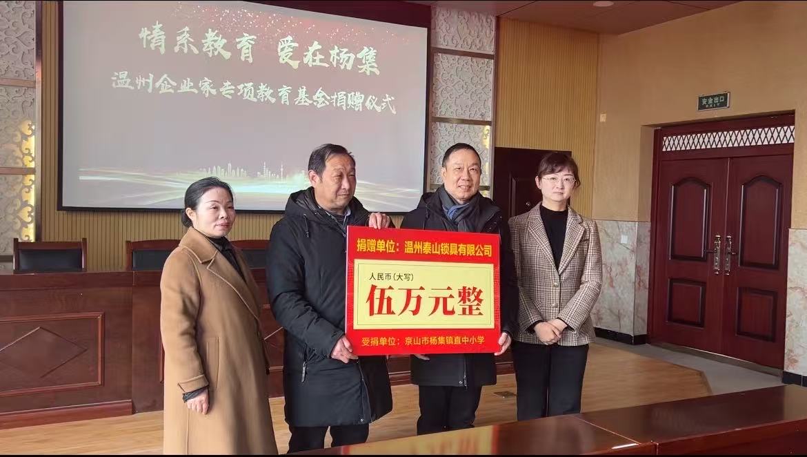 捐赠仪式上,温州市泰山锁具有限公司董事长邵辉作为捐赠方代表发言。他表示,教育是国之大计、党之大计,少年儿童是国家的未来与希望,企业始终心系乡村教育发展,此次捐赠是企业践行社会责任、反哺社会的应有之义。他寄语同学们珍惜学习机会,在成长路上勇攀高峰,未来用知识回报社会关爱。