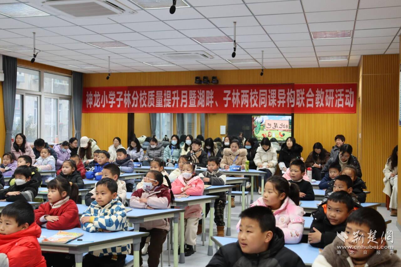 荆楚网(湖北日报网)讯(记者林杉 通讯员蔡羽 胡巍)近日,神龙小学子林分校与湖畔分校开展联合教研活动,湖畔分校教师前往子林分校进行送教交流。活动围绕科学、数学、语文三个学科,以“同课异构”形式展开教学切磋,并共同探索人工智能技术在课堂中的应用。