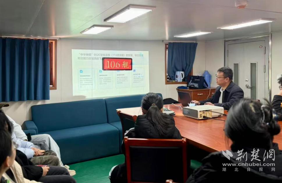 荆楚网(湖北日报网)讯(记者唐天琪 通讯员李天锐、李文青)近日,武汉城市学院思想道德与法治老师王祖法大胆创新教学形式,将校内后方水库驻泊的106舰化作专属课堂,打造沉浸式特色思政实践课,让红色教育与家国情怀培育落地生根,使思政课堂在国之重器旁绽放出独特魅力。