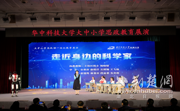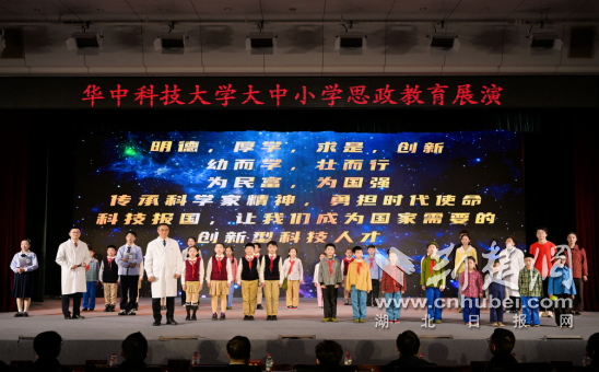 荆楚网(湖北日报网)讯(记者林杉 通讯员陈红 华生)1月14日,华中科技大学举行“传承科学家精神·共育时代新人”大中小学思政教育展演。活动通过跨学段联动的艺术化形式,将科学家精神的核心内涵转化为可感可学的生动实践,呈现了一堂沉浸式的“大思政课”。