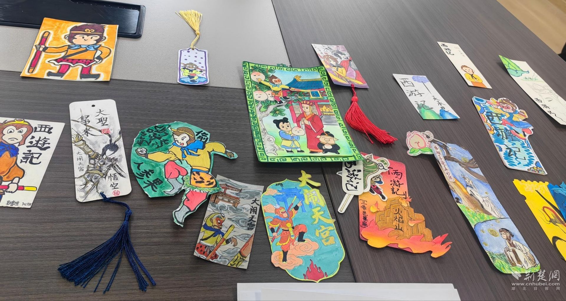 在“西游意蕴藏书签”活动中,七年级学子围绕《西游记》经典情节与人物展开创作。他们通过绘画、剪贴等形式制作书签,并附上简要创作说明。活动中,学生不仅重温原著细节,更将文学理解转化为艺术表达,完成从阅读、理解到创作、展示的学习闭环。