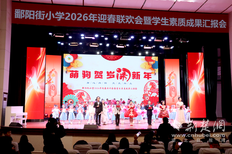 荆楚网(湖北日报网)讯(记者齐一璇 通讯员杨静 摄影齐一璇)2月1日,武汉市江岸区鄱阳街小学“萌驹贺岁闹新年”2026年迎春联欢会暨学生素质成果汇报会精彩上演。