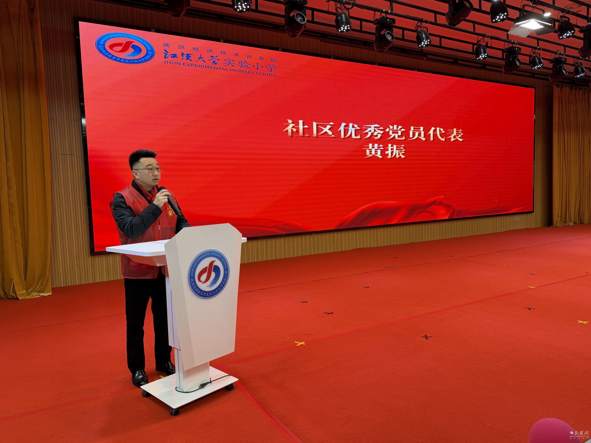 社校联动则成为本次活动的另一大亮点。江大园社区优秀党员代表黄振来到现场,向全体师生发起学雷锋倡议,凝聚起校社共育、践行美德的合力。倡议结束后,全体师生齐唱《学习雷锋好榜样》,熟悉的旋律传递出学雷锋、践美德的真挚热情。