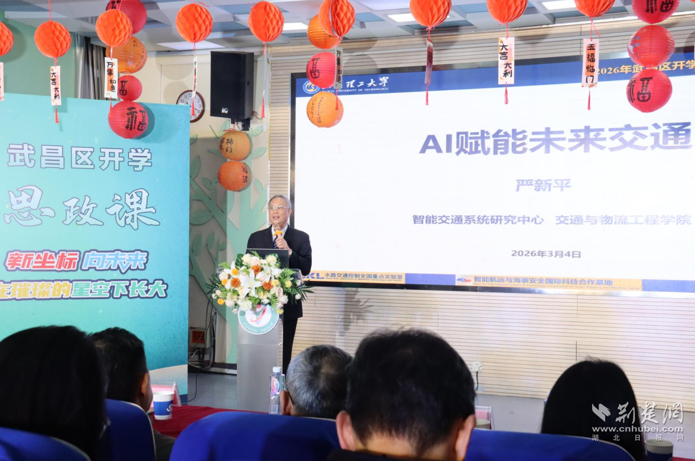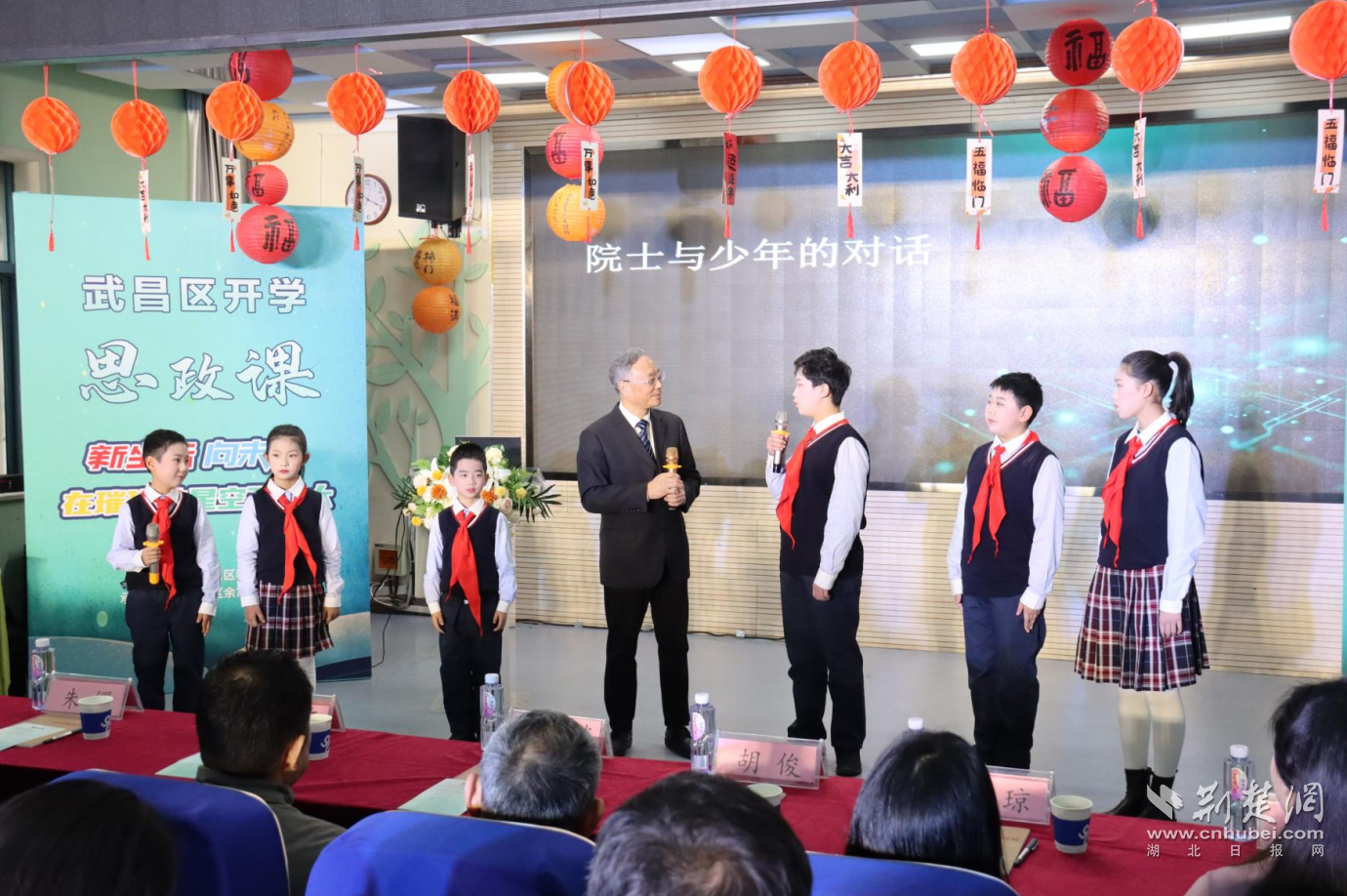荆楚网(湖北日报网)讯(记者齐一璇 通讯员张煜、刘俊岭 摄影齐一璇)3月4日上午,武汉市武昌区余家头小学的礼堂里,一群孩子站在舞台中央。这是2026年武昌区春季学期“开学思政课”的现场。思政课以“新坐标,向未来:在璀璨的星空下长大”为主题,台下的观众里,有中国工程院院士严新平、老师、家长、社区干部,还有一墙之隔的武汉理工大学的专家团队。但这场活动的“主角”始终只有一个——孩子。