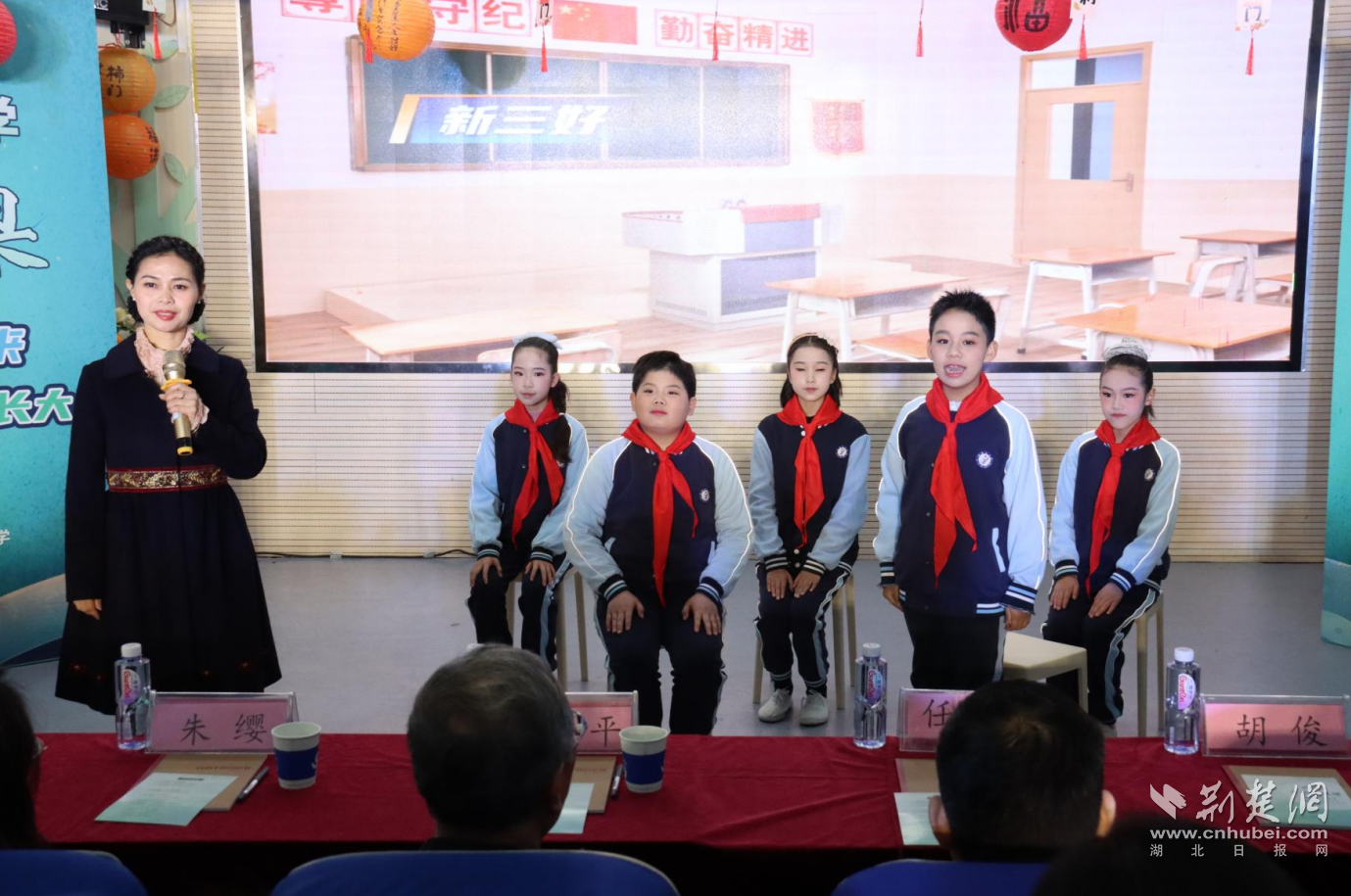 “我同桌体育特别好,以前大家只说他爱玩,现在都叫他‘体育明星’!”活动现场,孩子们用三句半把“好习惯”演得活灵活现:每天闹铃准时响,洗脸刷牙快起床,课间休息不打闹,上下楼梯右边靠。体育达人、美术能手、劳动小明星轮番上台展示。