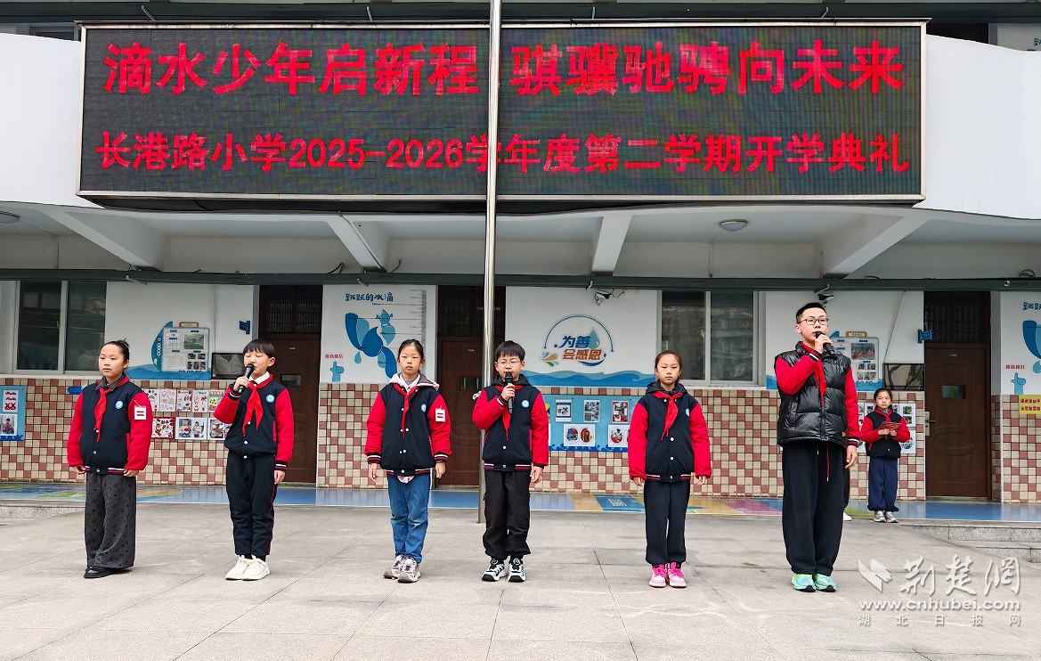 荆楚网(湖北日报网)讯(记者何鹏 通讯员潘蓉)3月4日,江汉区长港路小学迎来2025-2026学年度春季学期“滴水少年启新程 骐骥驰骋向未来”开学典礼,全校师生齐聚校园,共赴新学期新征程。