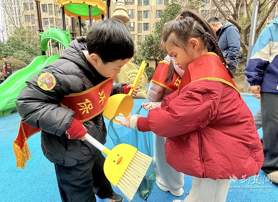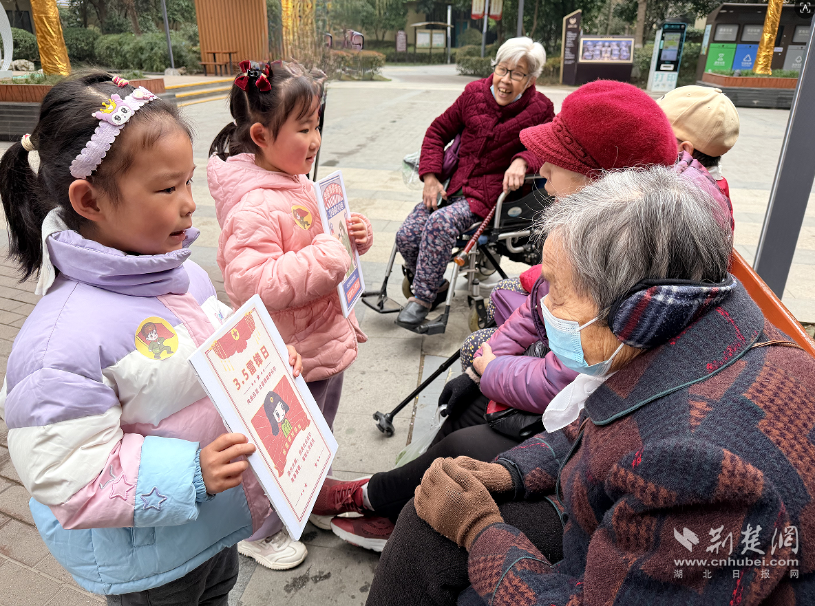荆楚网(湖北日报网)讯(记者何鹏 通讯员王潇、杨诗淳)萌娃学雷锋,温情暖社区。3月5日,江汉区盛世红苗幼儿园10名幼儿在青年党团员教师带领下,走进盛世社区开展志愿服务,用稚嫩行动诠释雷锋精神,让美德在童心间扎根传承。