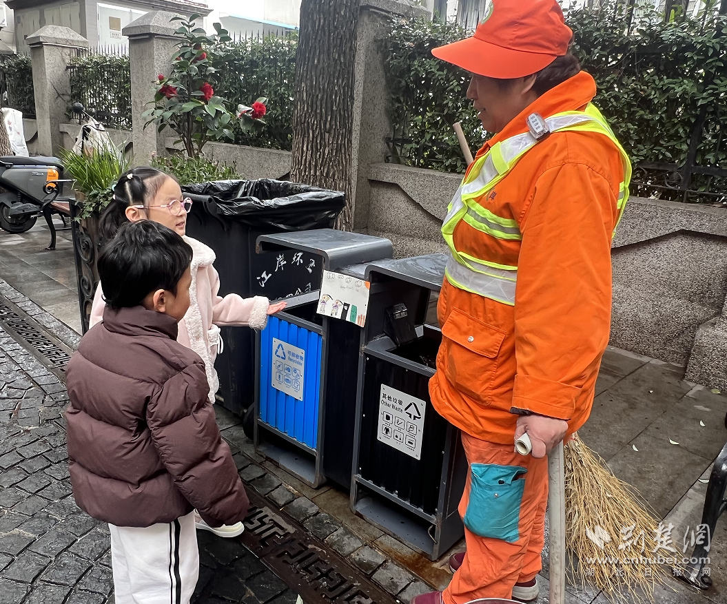 荆楚网(湖北日报网)讯(记者齐一璇 通讯员张倩、周婷)“阿姨,您辛苦了!我们来帮您!”大班的朵朵举着自己画的环保宣传画,跑到正在清扫路面的环卫工人李阿姨面前。“叔叔,您知道雷锋叔叔吗?”几名“小小讲解员”顺势当起了采访员,有模有样地“采访”起路过的居民。