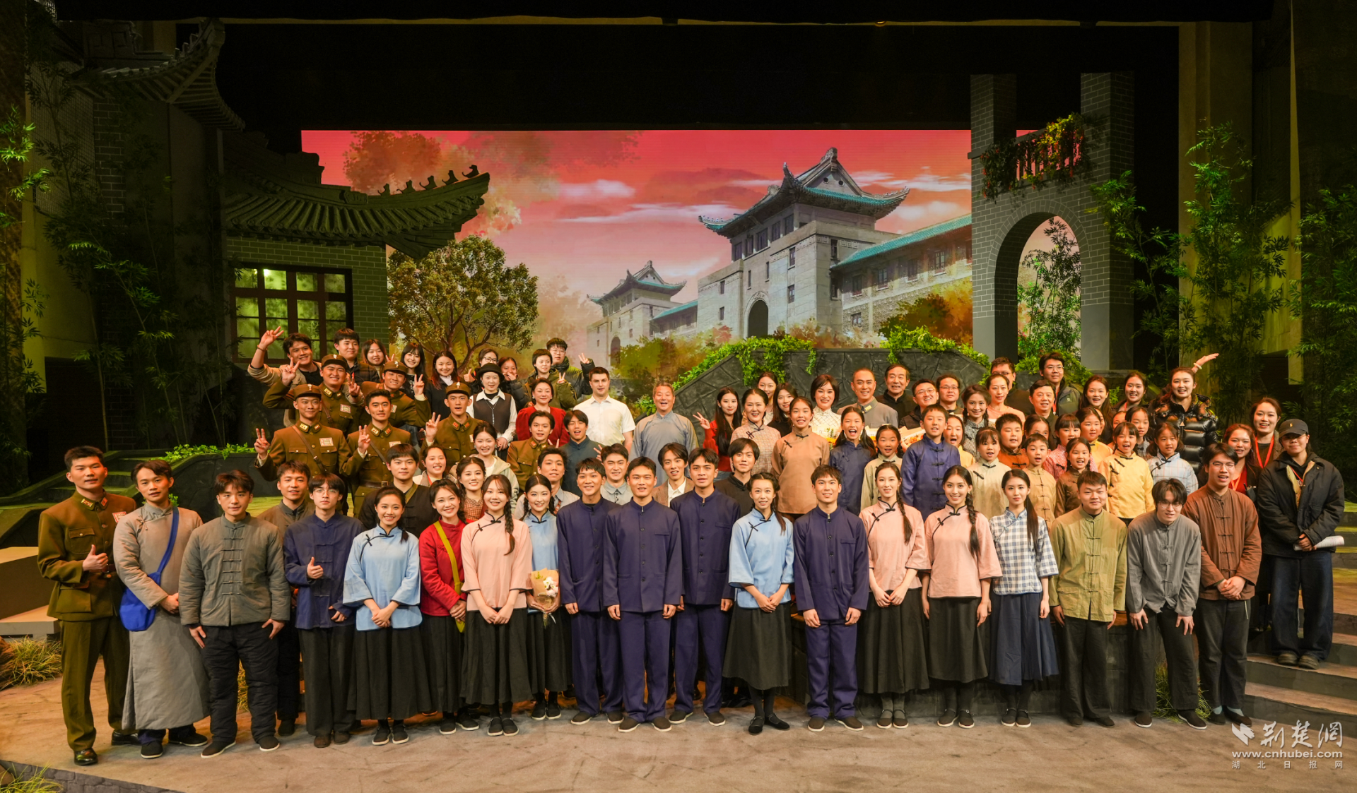 这是武汉大学原创话剧《周恩来在珞珈山》的展演现场。由武汉大学党委宣传部、档案馆(校史馆)共同策划,艺术学院(艺术教育中心)承担创作排演任务的这部话剧,以1937年至1938年全面抗战初期的烽火岁月为背景,再现了周恩来同志在珞珈山“十八栋”寓居期间,广泛团结师生、推动抗日救亡的感人历程。