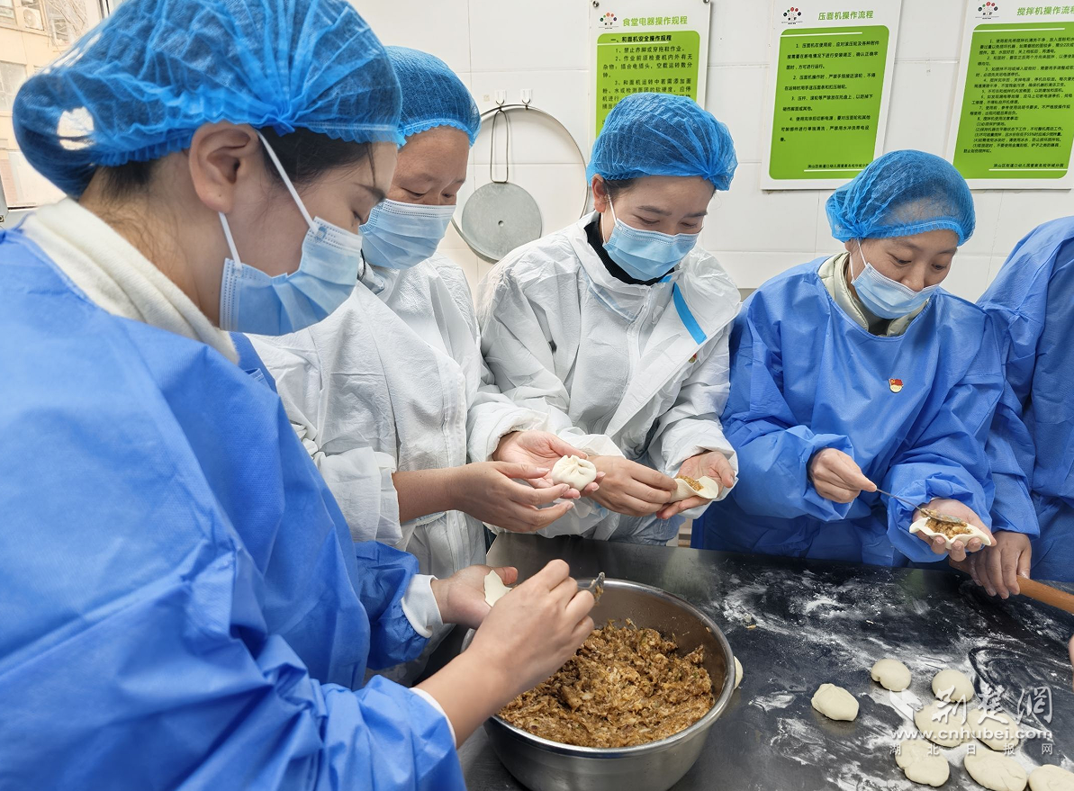 在“包包子”帮厨志愿服务活动现场,新鲜的食材、面团、馅料早已准备就绪。党员同志们分工协作、默契十足:揉面的党员手法娴熟,反复揉搓使面团更加筋道;擀皮的党员动作迅速,擀出的面皮薄厚均匀,大小适中;包馅的党员得心应手,添馅、捏褶、收口,一气呵成。大家边包边交流包子的制作技巧,食堂阿姨在一旁指点迷津,现场其乐融融,洋溢着团结协作、积极向上的氛围。经过一个多小时的忙碌,一个个饱满圆润、造型精致的包子整齐排列在蒸盘中。